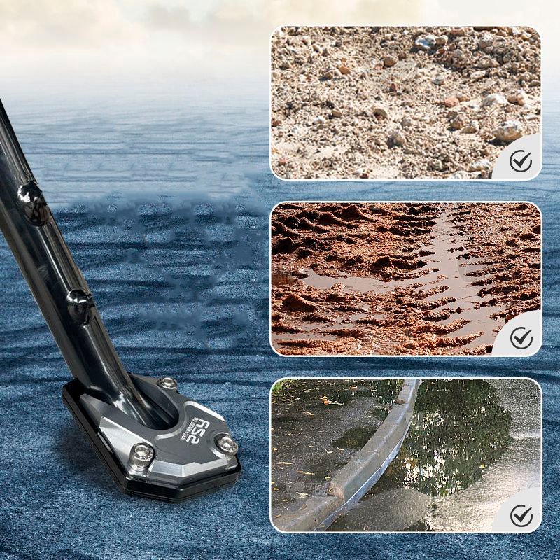 Priorizamos la durabilidad y longevidad de nuestros productos. Las almohadillas del caballete lateral de la motocicleta están hechas de materiales de aleación de aluminio NC de alta calidad, lo que hace que las almohadillas laterales de la motocicleta sean muy duraderas.