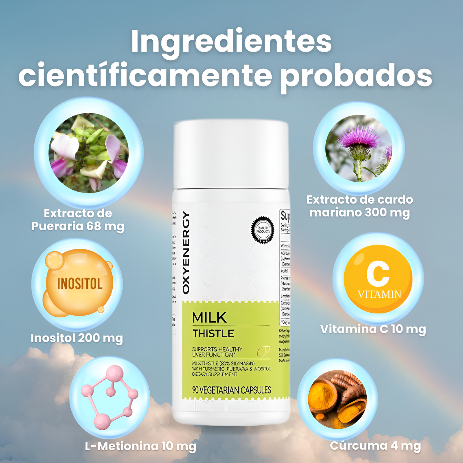Milk Thistle – Oxylenergy trabaja directamente en la protección y regeneración del hígado, ayudando a eliminar toxinas acumuladas y fortaleciendo su funcionamiento. El resultado se siente desde adentro: digestión más ligera, menos hinchazón y una energía natural que vuelve a tu día a día.