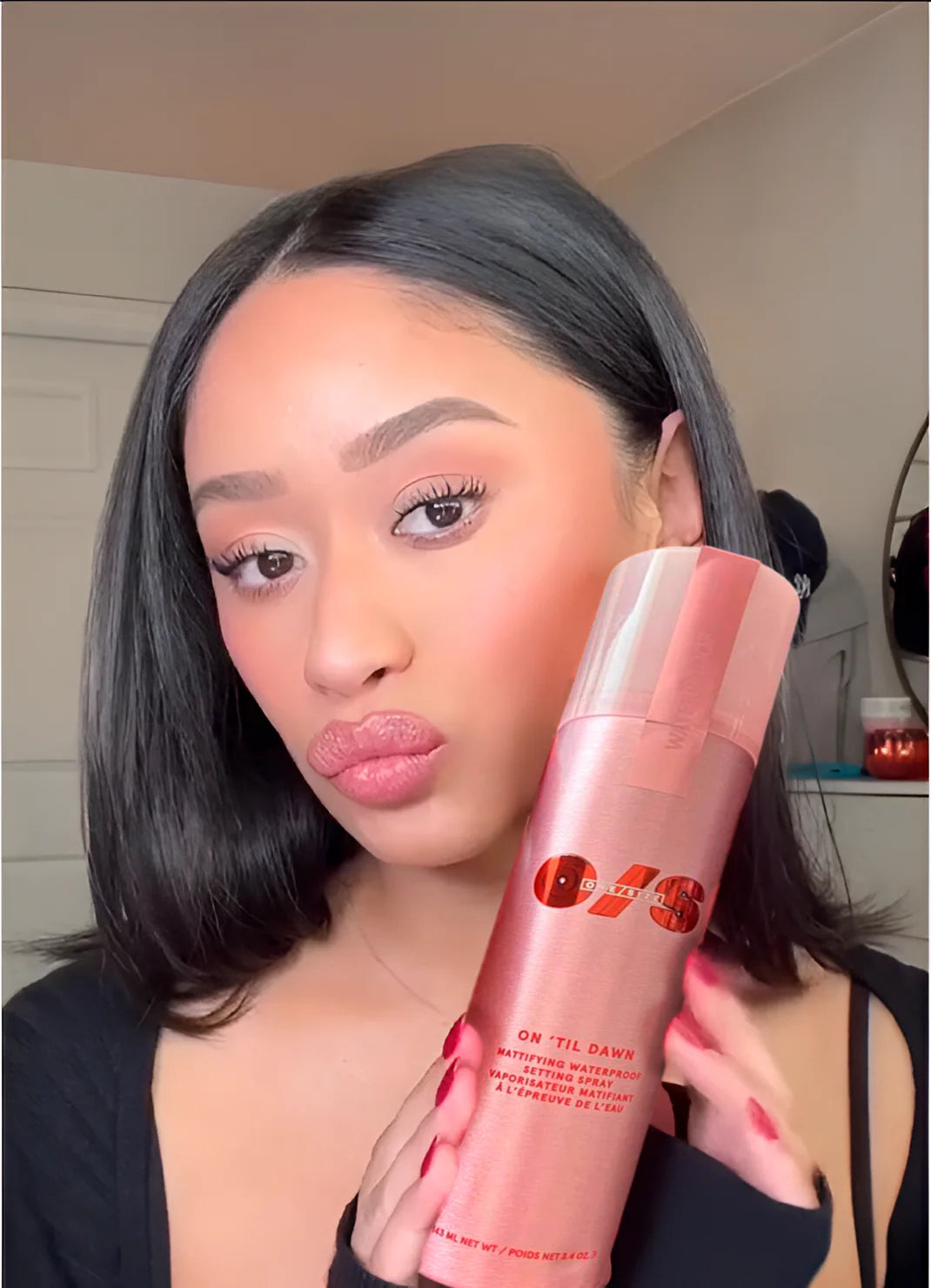 - Aplica al final del maquillaje, sosteniendo el frasco a unos 20–25 cm del rostro.